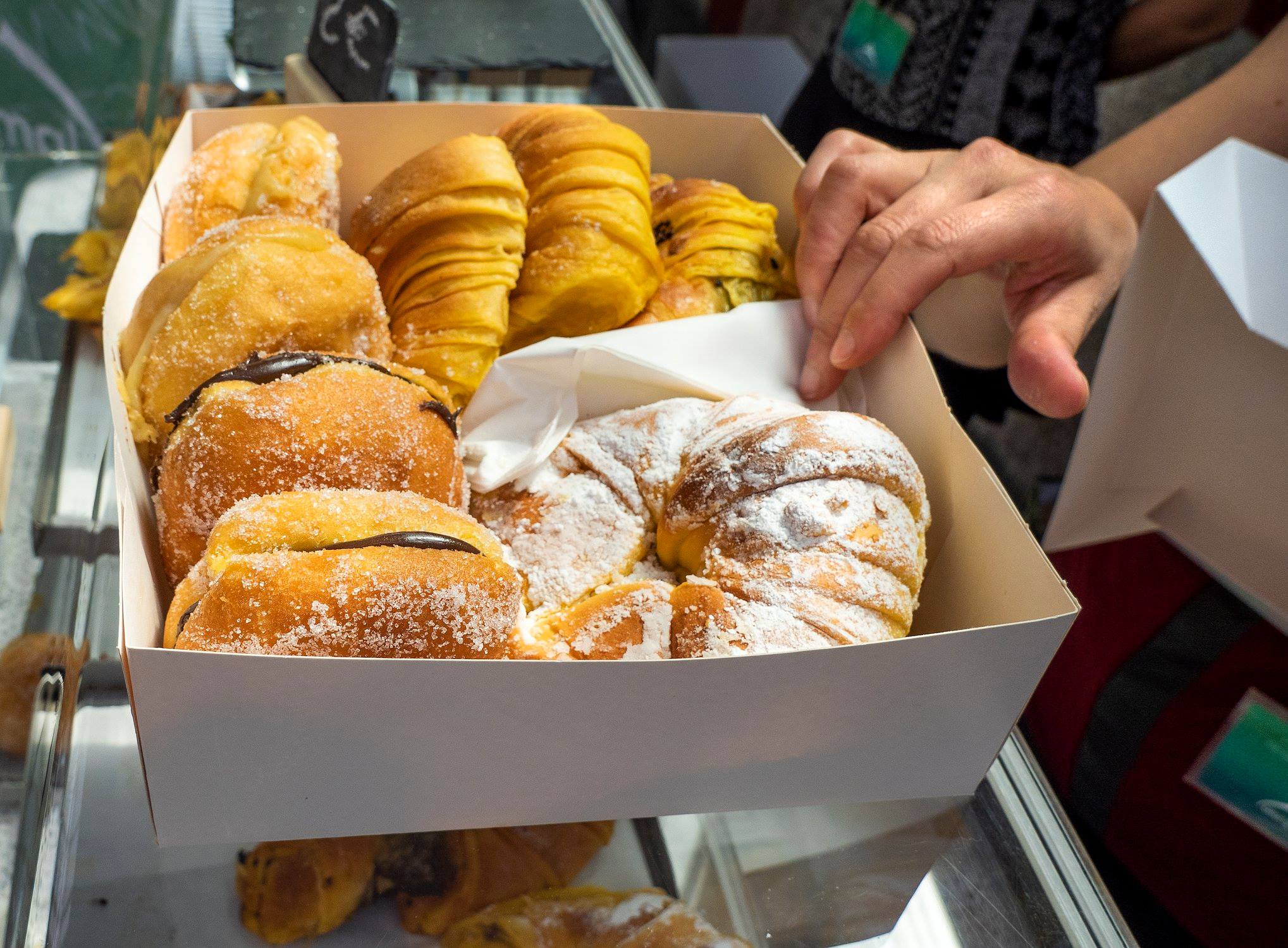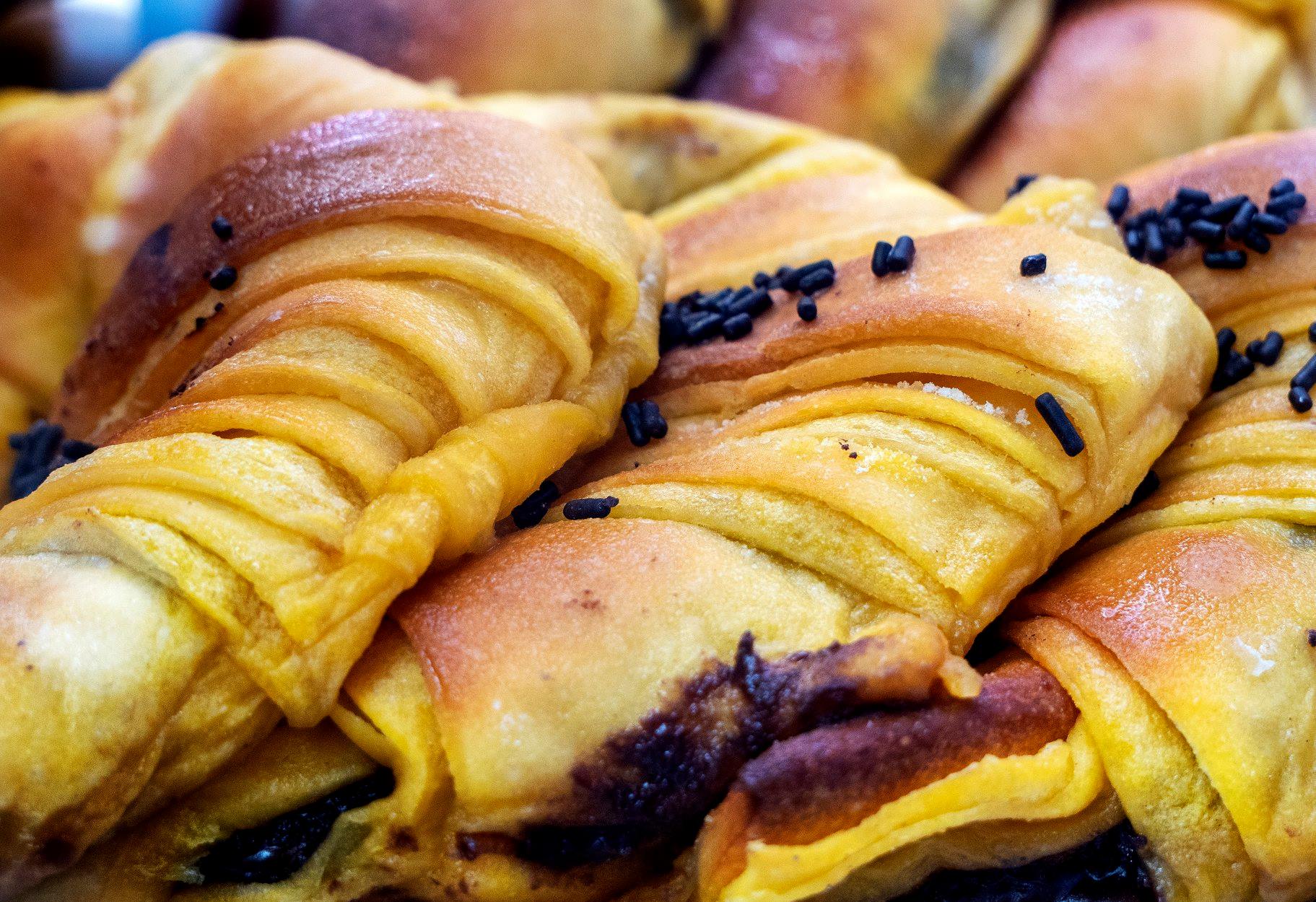 Croissants Simples, Croissants com Creme, Croissants com Chocolate, Bolas de Berlim Simples, Bolas de Berlim com Creme, Bolas de Berlim com Chocolate, Amêndoas Torradas, Bolachas e Bolo Rei de Páscoa, e muitos, muitos sorrisos!
