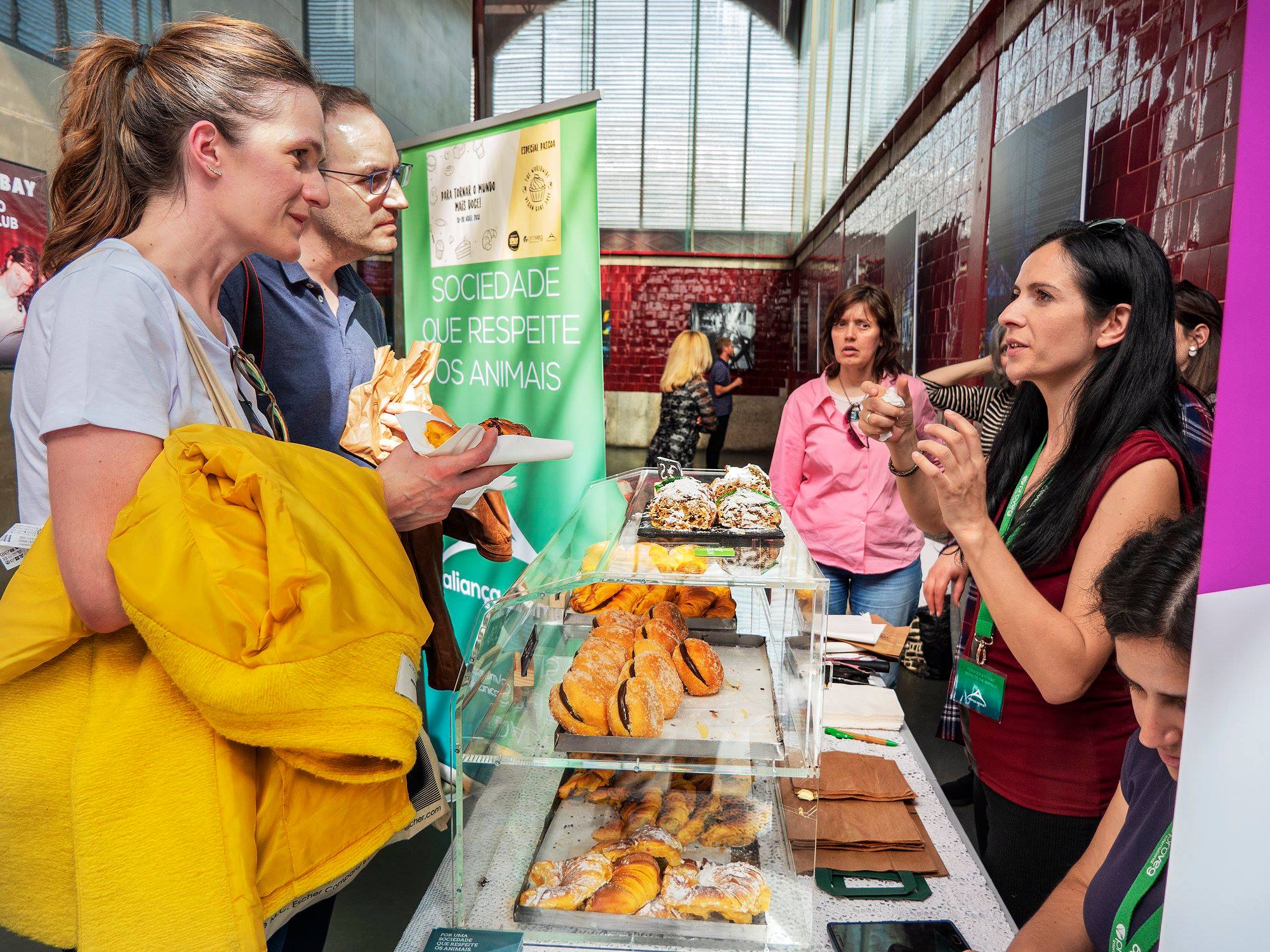 “CRAVO E CANELA” A Sofia Carvalho, da Aliança Animal, lançou neste evento a sua nova linha de pastelaria tradicional mas vegana, a Cravo e Canela, que poderemos passar a encontrar brevemente na Confeitaria HC, em Matosinhos.