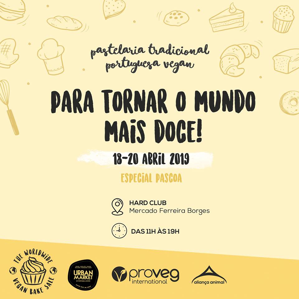 Tivemos a honra e a alegria de participar do “Urban Market – especial Páscoa”, no Hard Club, no Porto, com o lançamento da linha vegana de pastelaria “Cravo e Canela”, durante a iniciativa “Worldwide Vegan Bake Sale 2019” e vendemos centenas de bolos veganos a centenas de pessoas que se deliciaram e passaram a perceber que não precisamos de ingredientes de origem animal para continuarmos a ter o prazer de sempre!